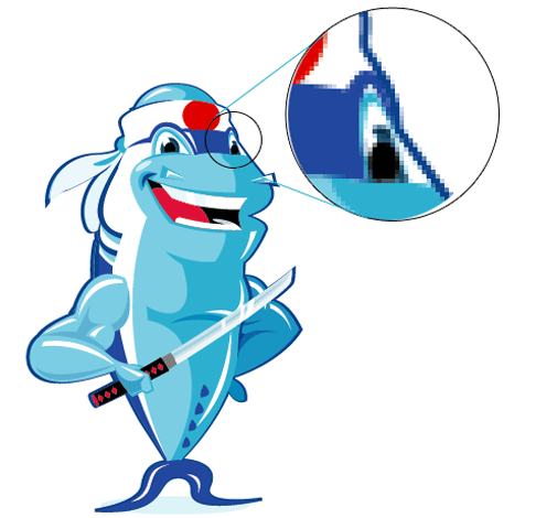Here are 2 examples of an image when magnified or scaled up. You will notice the difference in clarity. The mascot design below was designed by SpellBrand for a client.