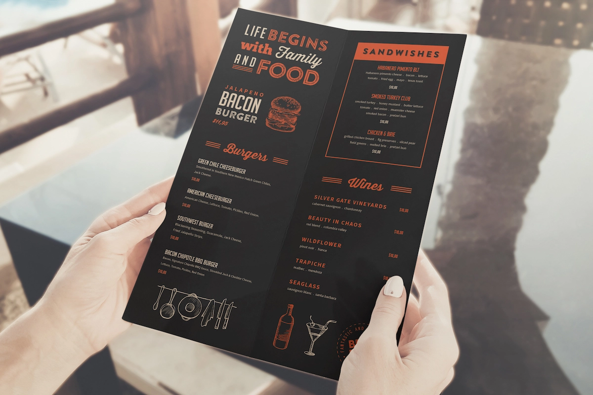 As part of an ongoing engagement, we have also created a stunning-looking restaurant menu that communicates the right message. Using custom hand-drawn icons, the brand color palette, and beautiful typography, the restaurant menu looks absolutely beautiful.